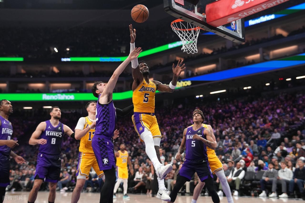 末节初段,老詹和东契奇继续带队,国王命中率有所下滑,湖人抓住机会将分差缩小,海斯勾手再中追到95-102,国王暂停。回到比赛,国王稳住局面,威少助攻拉文反击上篮打进,重新领先到两位数,湖人也喊停。艾顿罚球,东契奇中投追到个位数,关键时刻,又是德罗赞中投止血,蒙克抢断以后,又命中三分,在再助攻阿丘瓦三分,直接杀死比赛了。