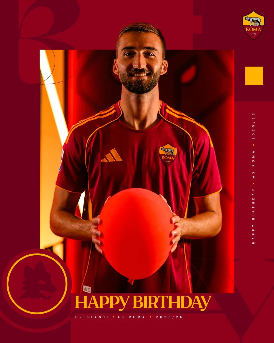yl23455 永利-克里斯坦特迎31岁生日,罗马官方社媒为其庆生